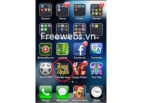 Bắt đầu kiếm tiền với FreeMyApp, đầu tiên, bạn mở trình duyệt Safari trên iPhone/iPad và truy cập vào địa chỉ http://m.freemyapps.com/share/url/cb126a10