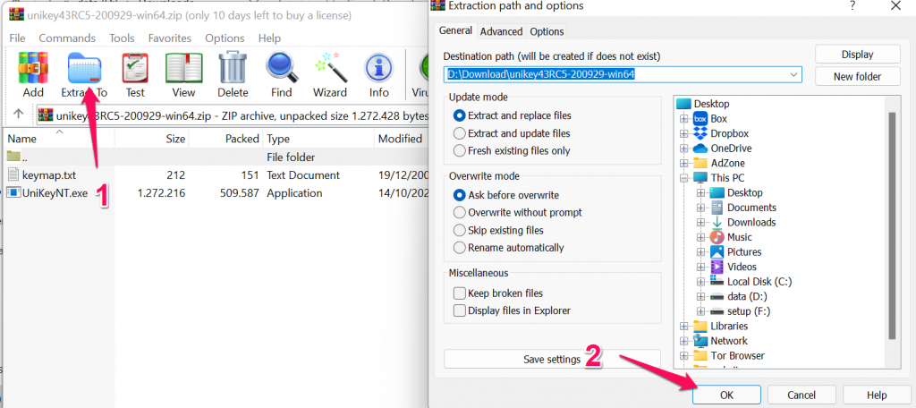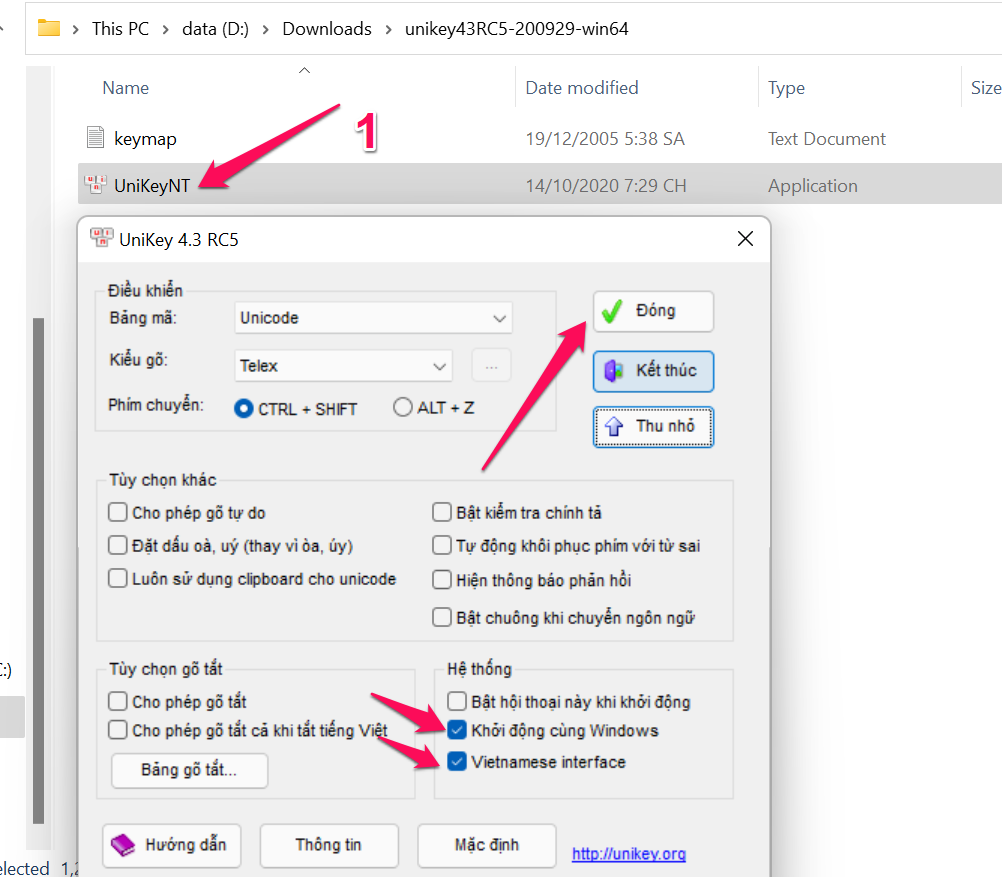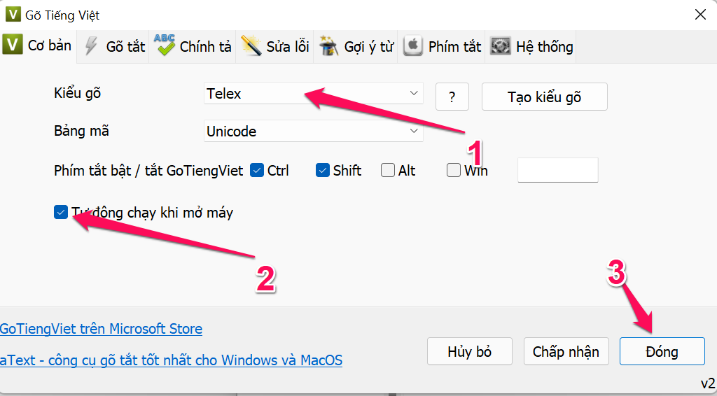 Các bạn click đúp vào file Gotiengviet đó sau đó cá bạn tùy chính giống như hình bên dưới.