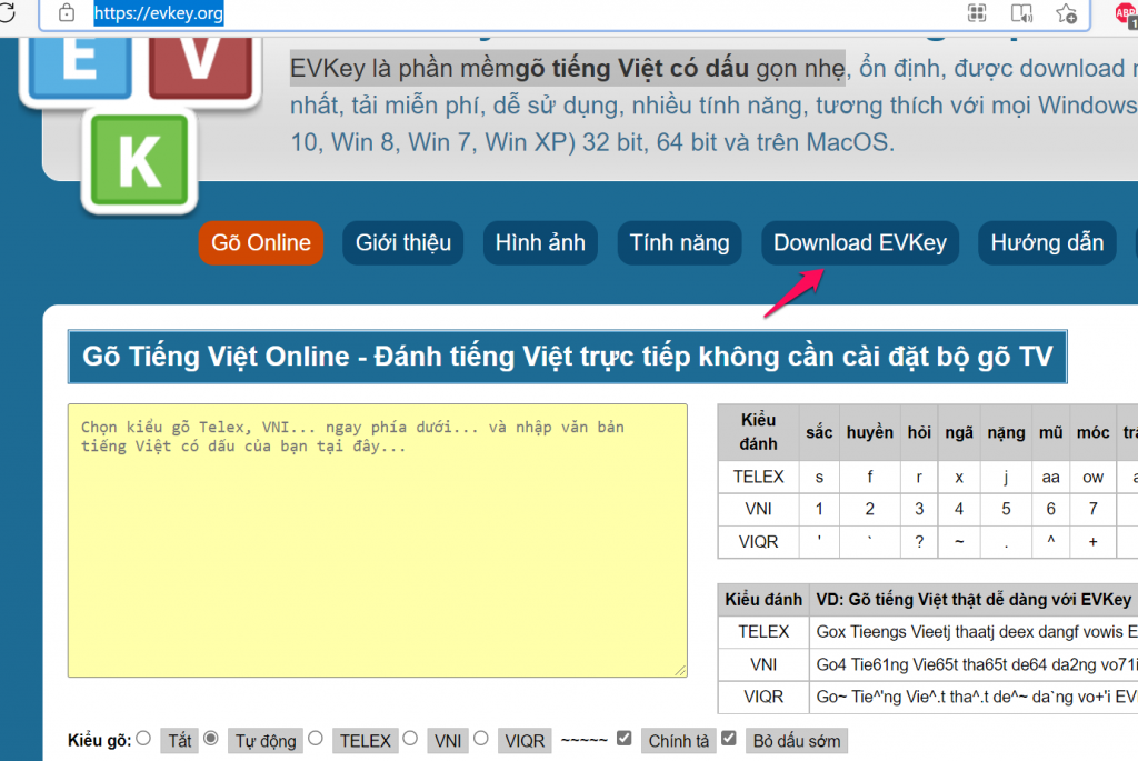 Để tải phần mềm EVKey về các bạn cần vào trang website: https://evkey.org/