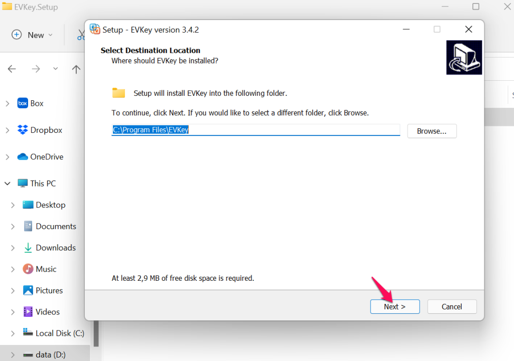 Sau khi giải nén các bạn được file EVKey.Setup hãy click đúp vào file này đẻ chạy cài đặt nhé.