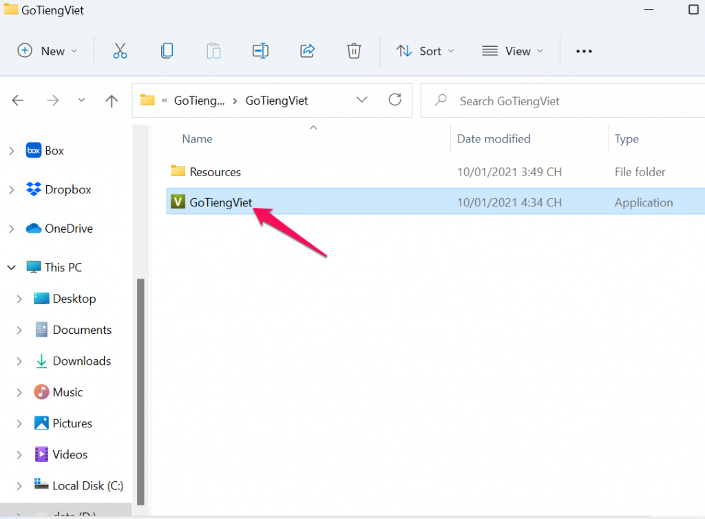 Sau đó các bạn bẩm vào Tải cho windows ta có file là GoTiengViet.RAR lúc này các bạn giải nèn, giống như cách giải nèn ở phần trên. sau đó ta có thử mục là GoTiengViet các bạn vào thử mục đó chạy file GoTiengViet