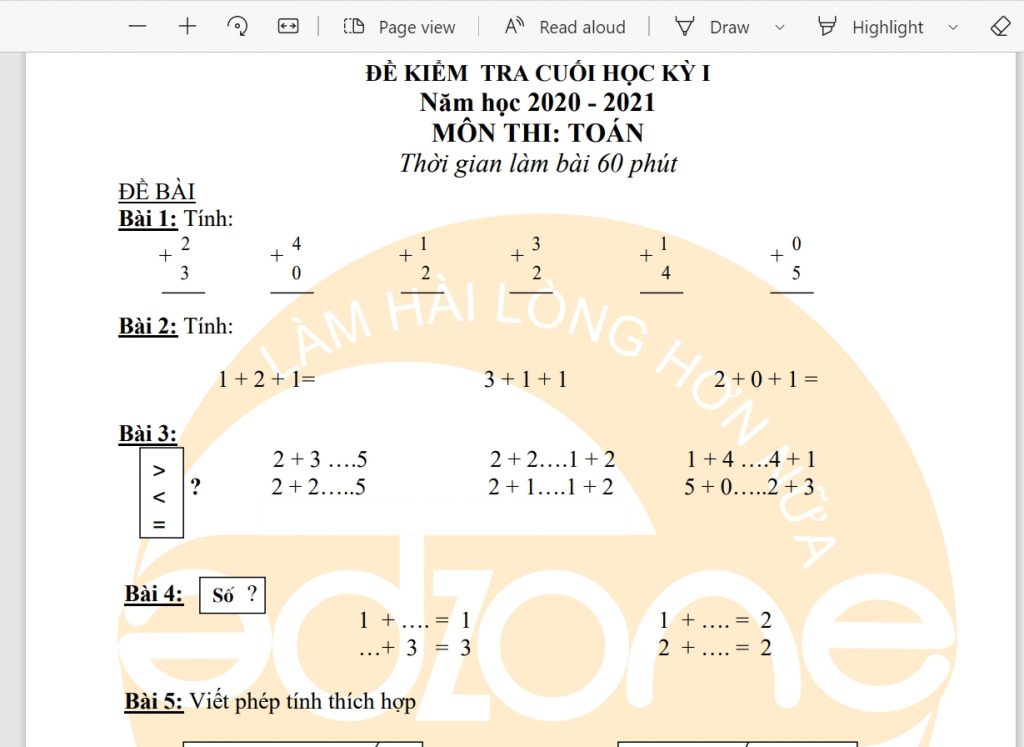 filemem.com xin giới thiệu với các bạn bộ đề thi học kỳ toán lớp 1 học kỳ 1 năm 2020-2021 mà chúng tôi đã mất rất nhiều thời gian tổng hợp và lưu trữ lại, hy vọng những đề này giúp các con chuẩn bị thì học kỳ 1 có những tài liệu giúp ích để đạt điểm cao hơn.