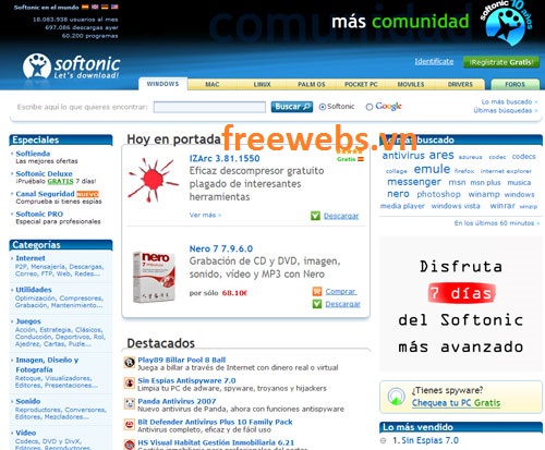 Không khác gì với download.cnet.com nó cũng là trang website được nhiều người lựa chọn khi cần download một phần mềm nào đó, ưu điển về mặt thiết kế đó nó nó đã tích hợp các ngôn ngữ được sử dụng rộng dãi như Tây Ban Nha, Đức, Anh, Pháp, Bồ Đào Nha, Ý, Trung Quốc cùng với nó là khả năng đánh giá các phần mềm từ người dùng van chuyen đến người quản trị, cũng là một cách nhận phản hồi từ người dùng vận chuyển tới xem chất lượng các phần mềm được upload lên đây, vì vậy không lạ gì khi Softonic cũng là một trang ưa chuộng đối với người dụng Việt Nam.