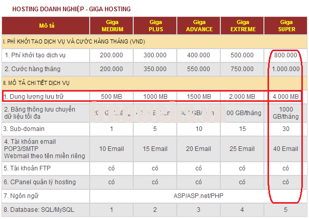Và đây mình điểm qua giá host của một số nhà cung cấp host khá nổi tiếng tại Việt Nam
